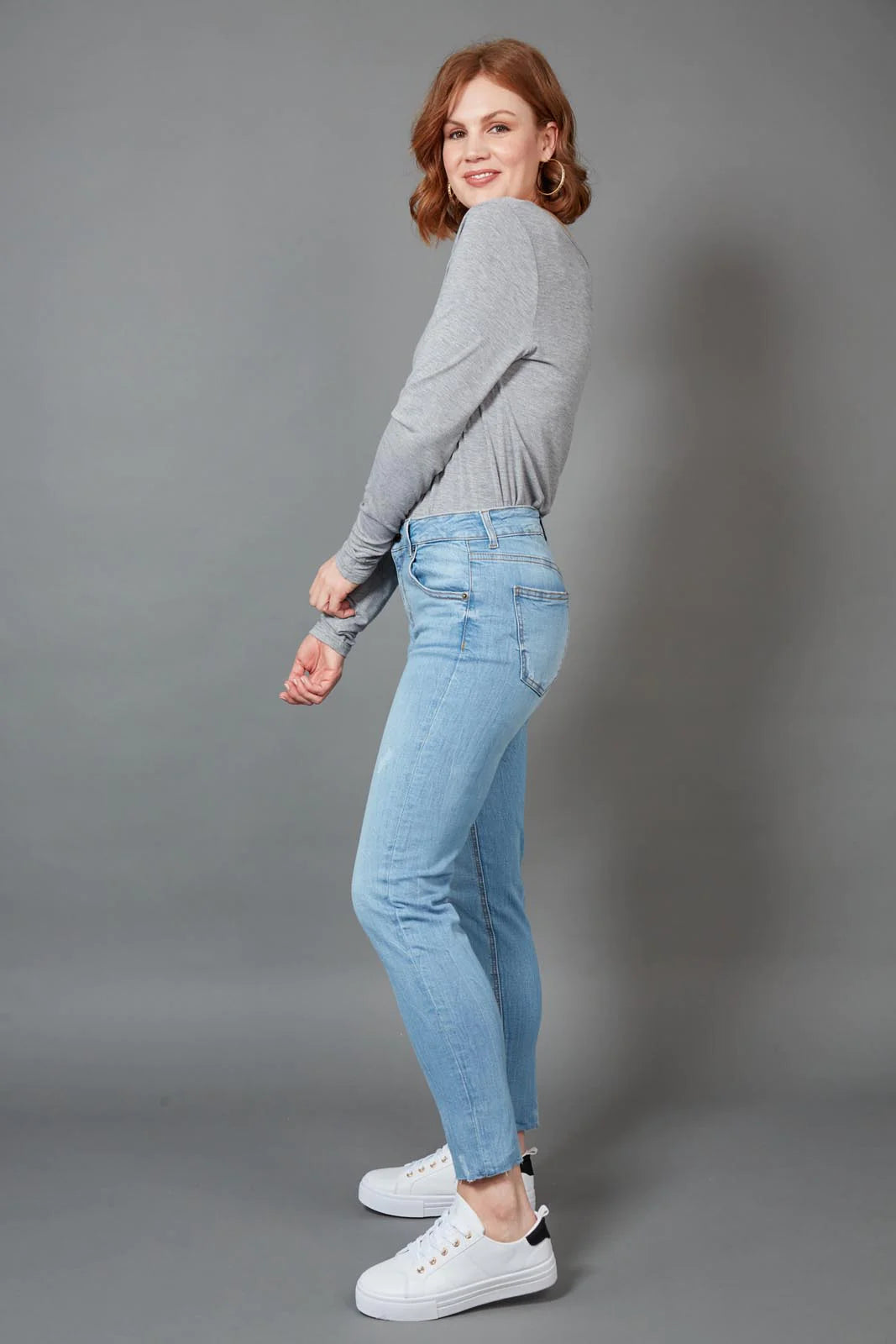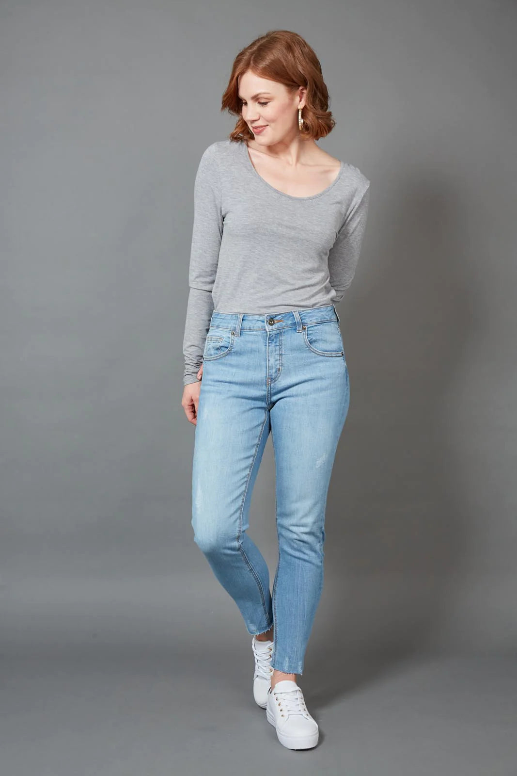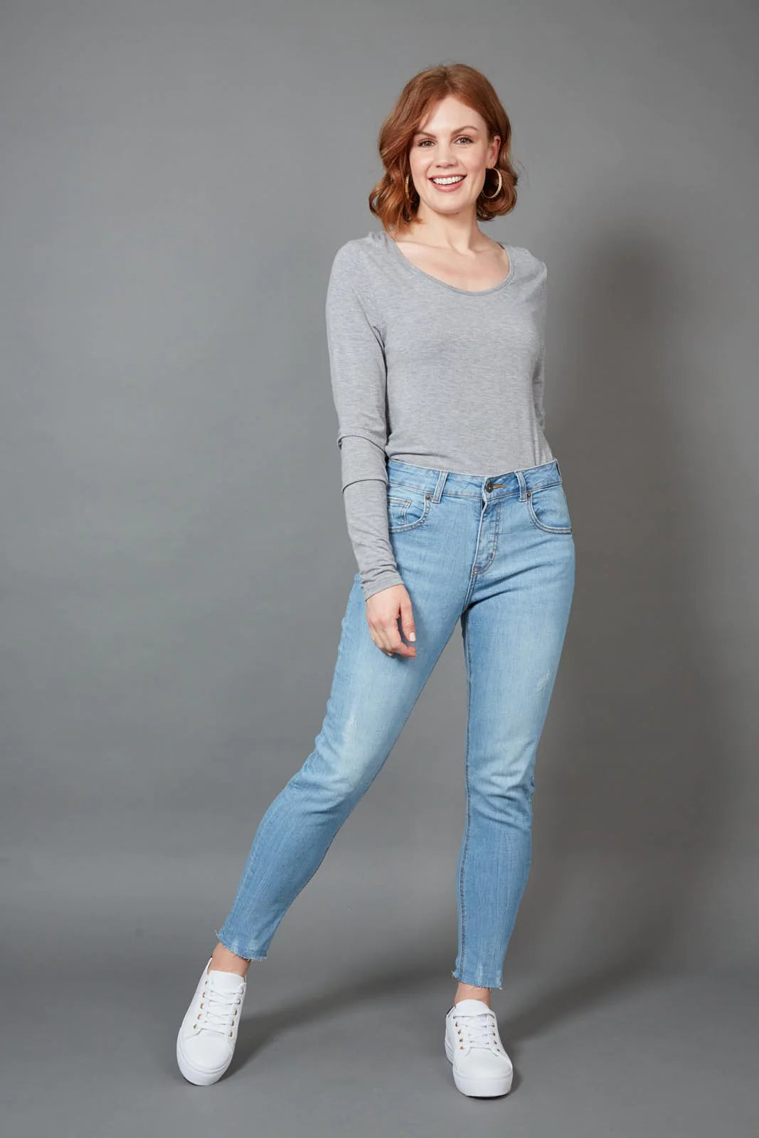 The smooth fitted design of the Junko Denim Jean conveys easy urban edge. This women's jean created from cotton and spandex features a mid-rise, skinny fit design with belt loops, button, zip closure and five pockets. Ankle length with a medium stretch these super comfy jeans are available to shop in two colours and are perfect Summer or Winter.