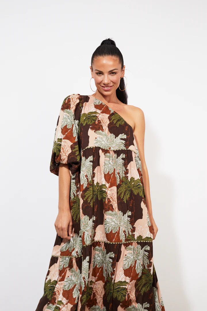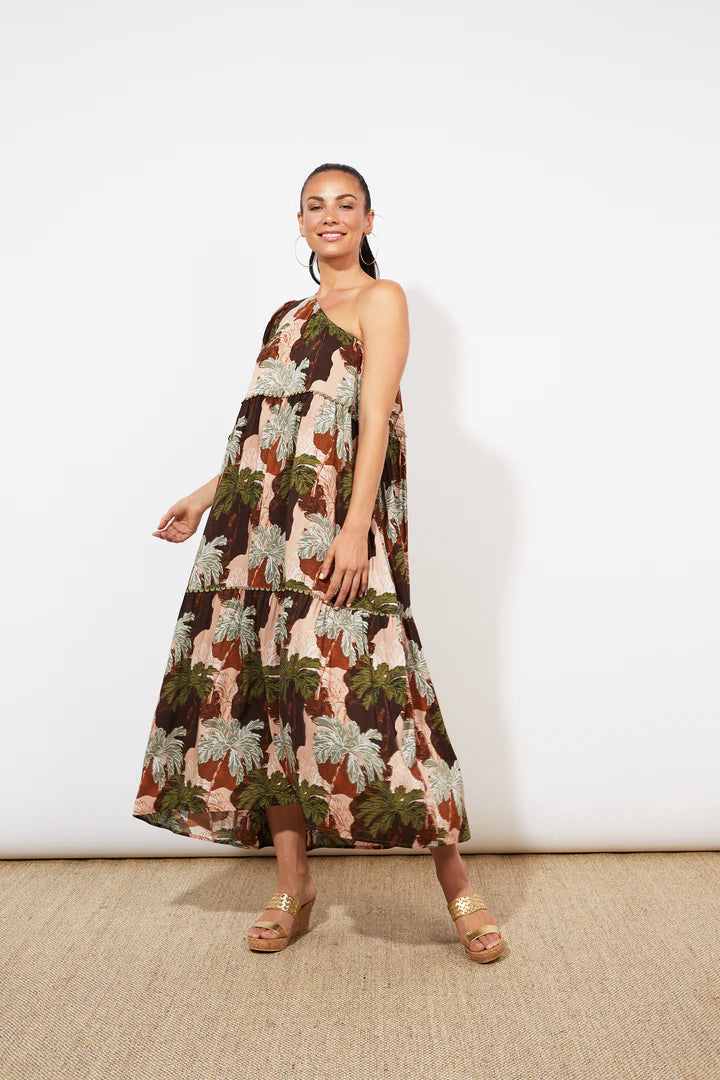 Make a stunning entrance at all your formal summer events with the Cayman One Shoulder Dress. This glamorous maxi dress is a total showstopper! It offers the versatility to wear it two ways, allowing you to choose your preferred side for the sleeve. The tiered, ankle-length design gives you a graceful and flowy silhouette, guaranteed to catch everyone's attention. Complete the look with glam accessories, heels, and a matching clutch.