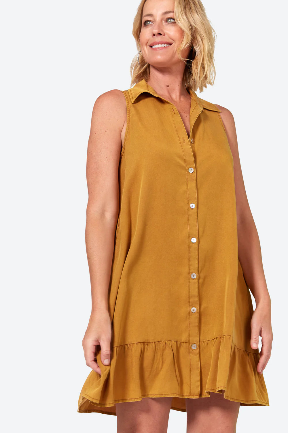 Feel your absolute best in this vibrant little number! The Elan Sleeveless Dress is made with soft Tencel and features a collar, button-down front and a playfully frilled hem. Just add sneakers and a hat for a casual stroll by the beach!