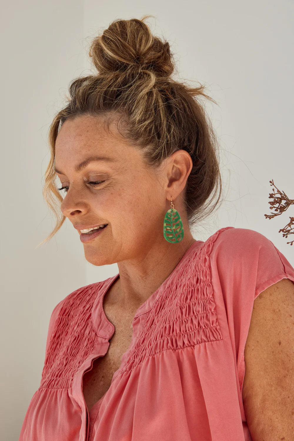 Style and sophistication go hand in hand with the Elan Top, featuring a sleeveless design with a half-button front and ruched detail. This Tencel top is perfect piece for all of your weekend activities, style it with loose pants and sandals.
