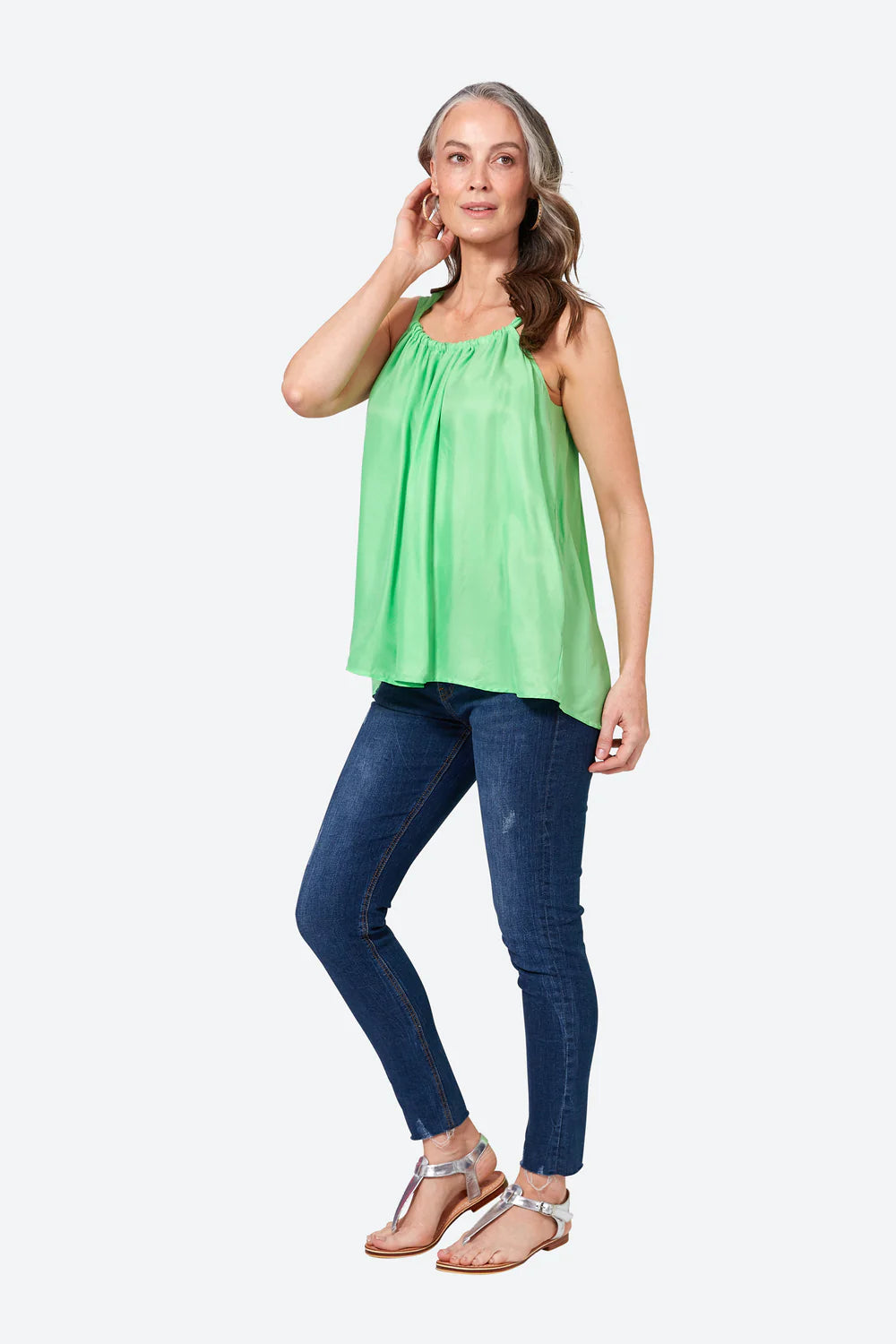 Exuding elegance, the Elixir Tank is made with a luxurious cupro fabric. This reversible style will expand your styling options, featuring wide adjustable straps and a relaxed hem in vivid summer tones.