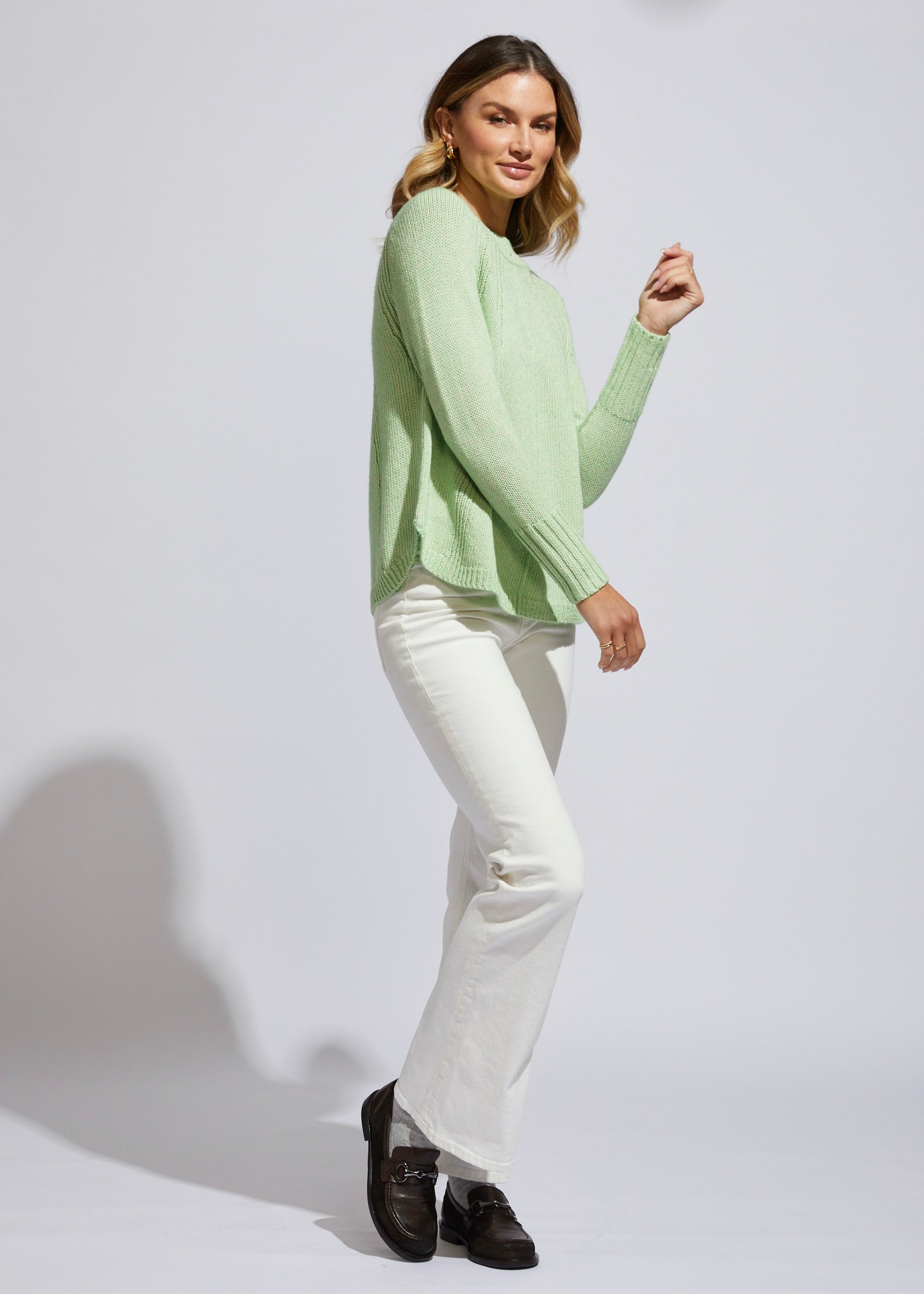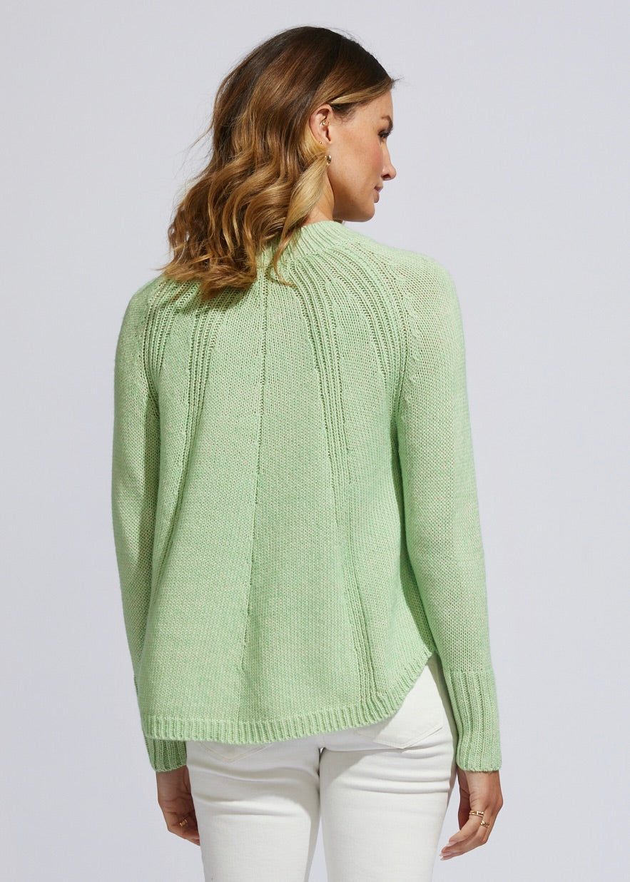 Soft knit with a swing fit in mouline yarn with detailed ribbing front & back.