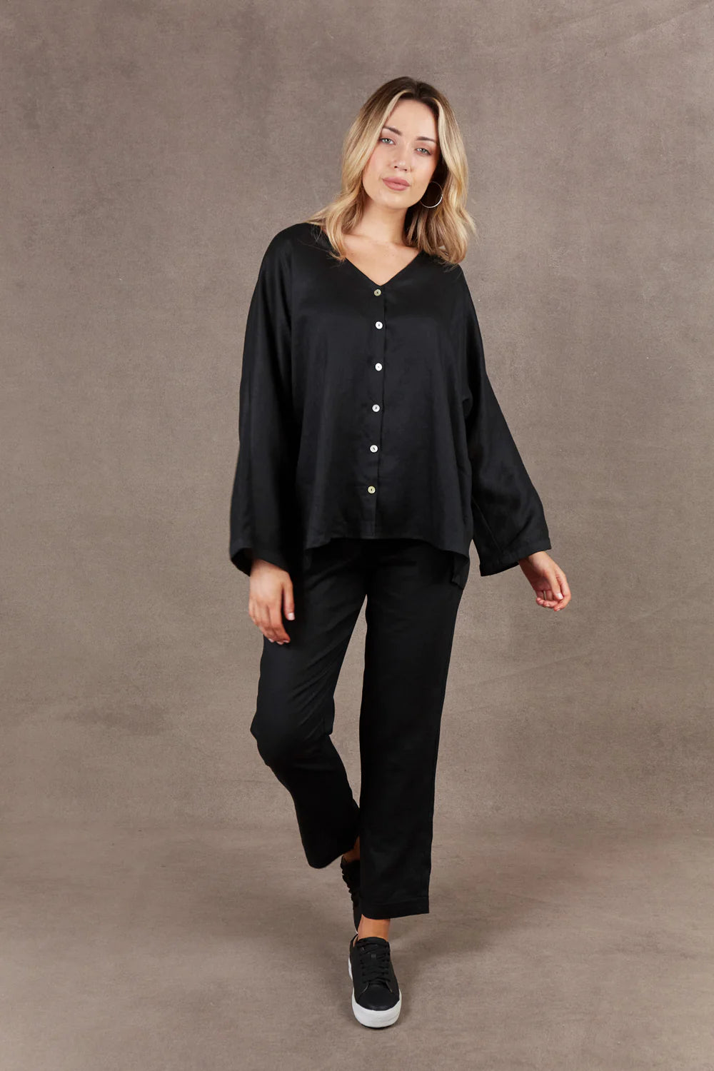 The Nama Relax Top is a versatile transeasonal essential crafted from airy 100% linen with a relaxed fit. Its button-down design offers dual styling options—buttoned for a polished look or worn loose over a light layer. Pair it effortlessly with denim jeans and sneakers for a laid-back, everyday ensemble.