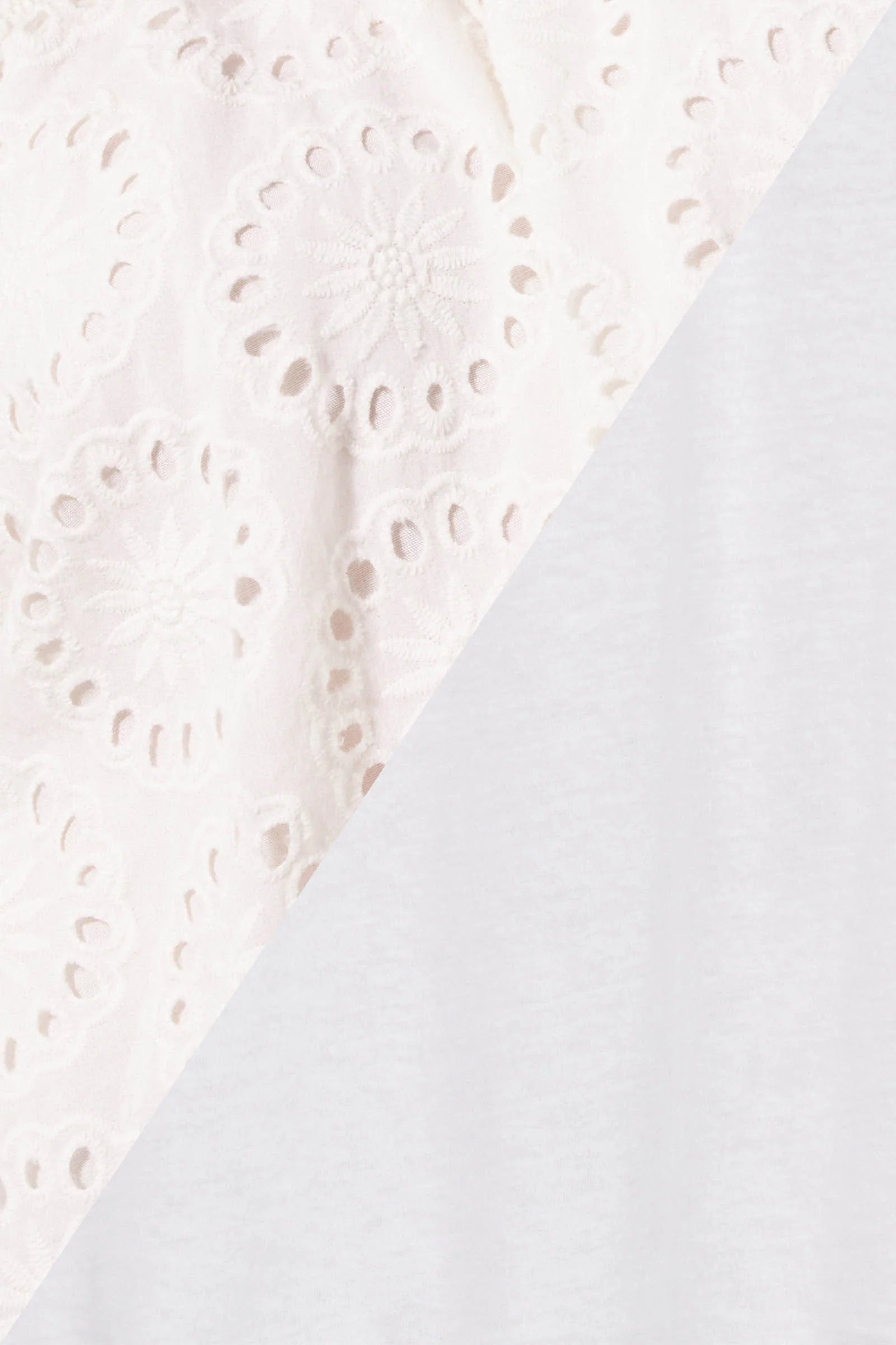 Elevate your natural style with the Arbour Tshirt, crafted with lightweight cotton fabric. The broderie raglan sleeves and scalloped edge bring a touch of feminine elegance to your ensemble. Style it for a leisurely lunch with friends by pairing it with a maxi skirt, sandals, and simple accessories.