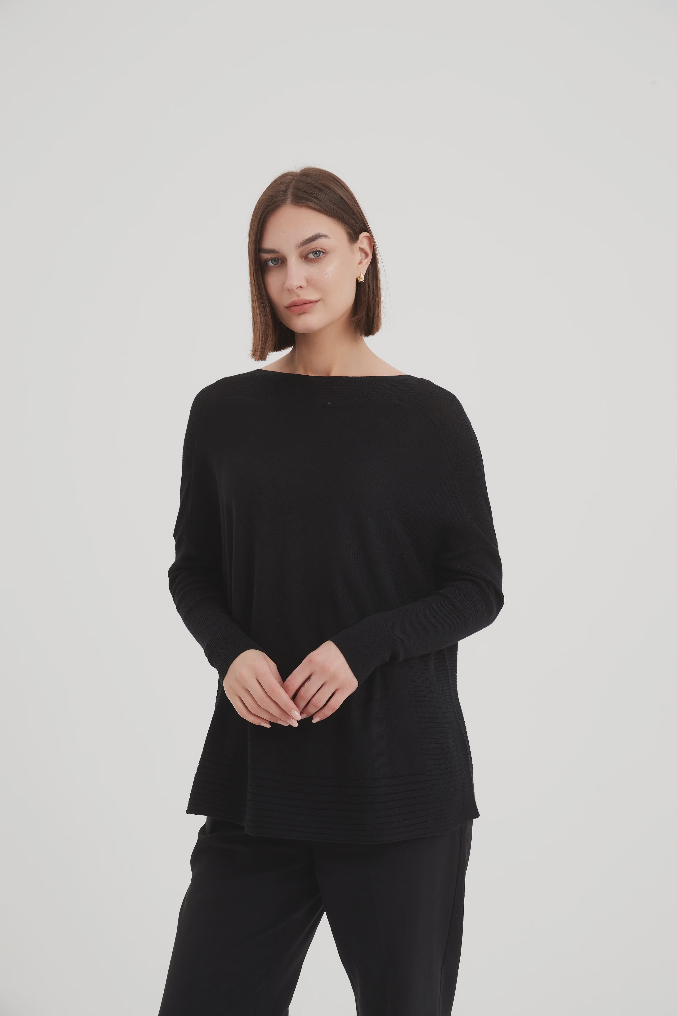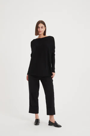 Wide Neck Knit Top Black