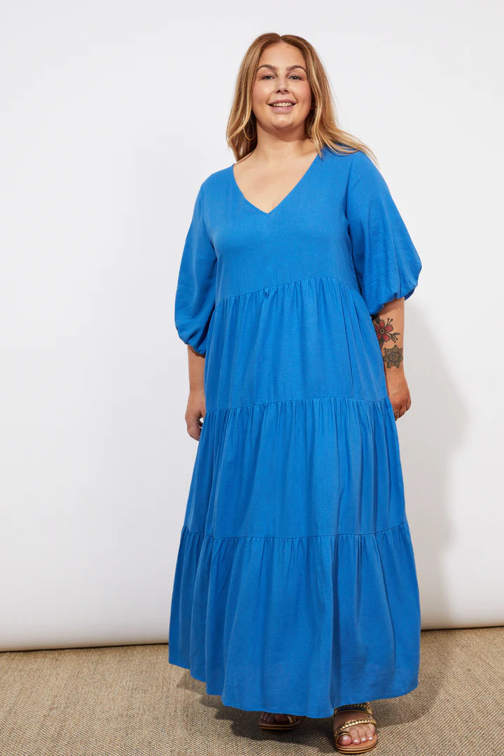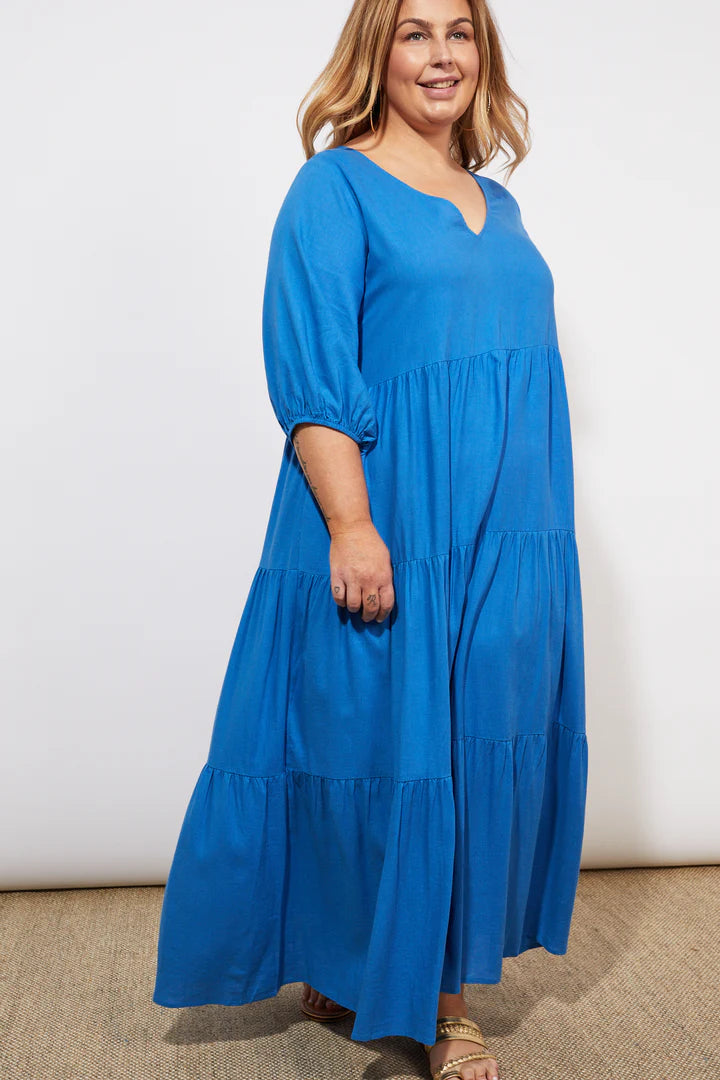 The Tanna Tiered Maxi is a must for sunny days. The linen blend fabric is perfect for staying fresh and breezy, while the flattering silhouette is oh-so-comfortable. With a V-neck and puffed sleeves, it exudes a timeless charm that'll make you feel fabulous whenever you wear it. This versatile beauty is perfect for beach days or city strolls - just add sneakers or sandals!