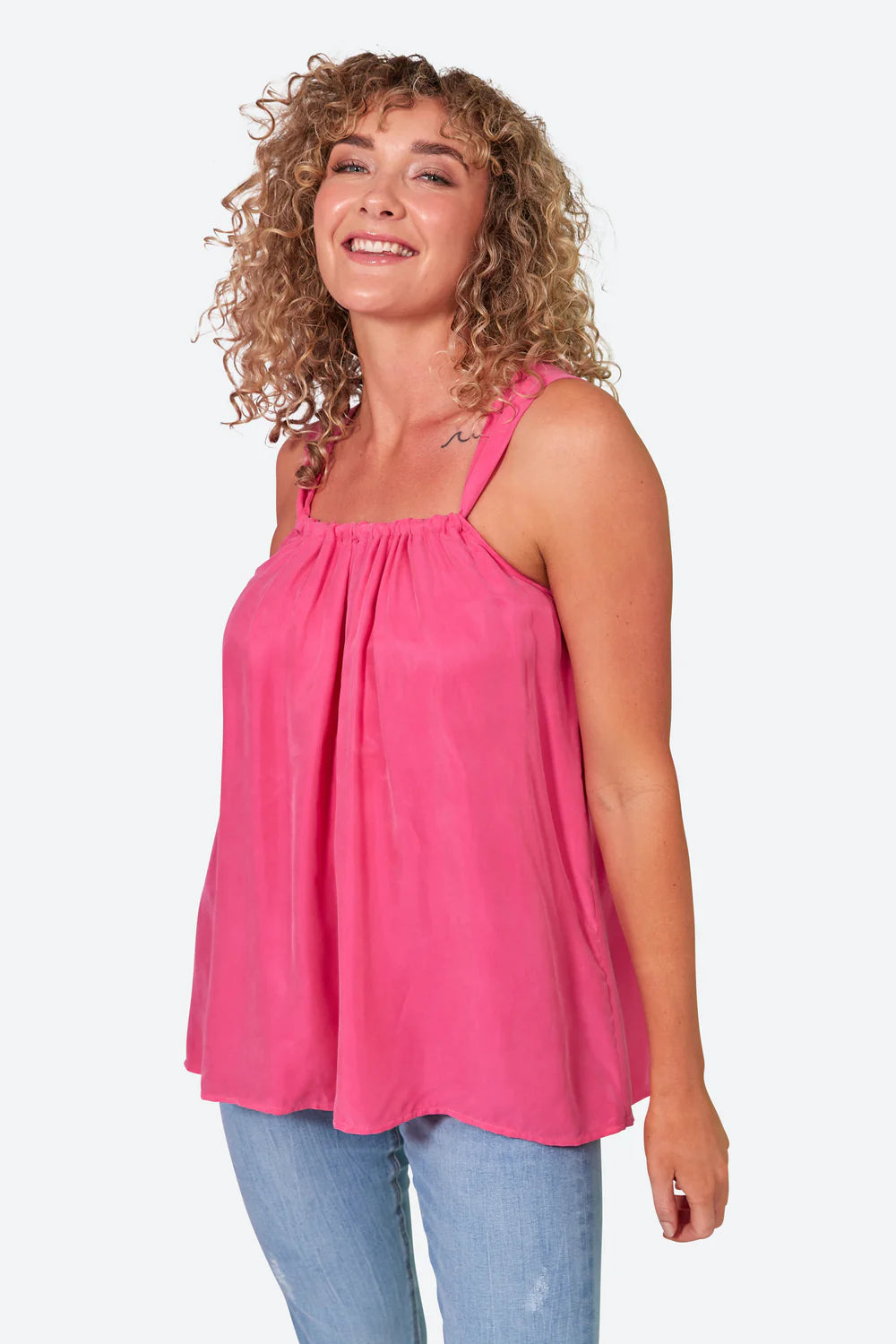 Exuding elegance, the Elixir Tank is made with a luxurious cupro fabric. This reversible style will expand your styling options, featuring wide adjustable straps and a relaxed hem in vivid summer tones.